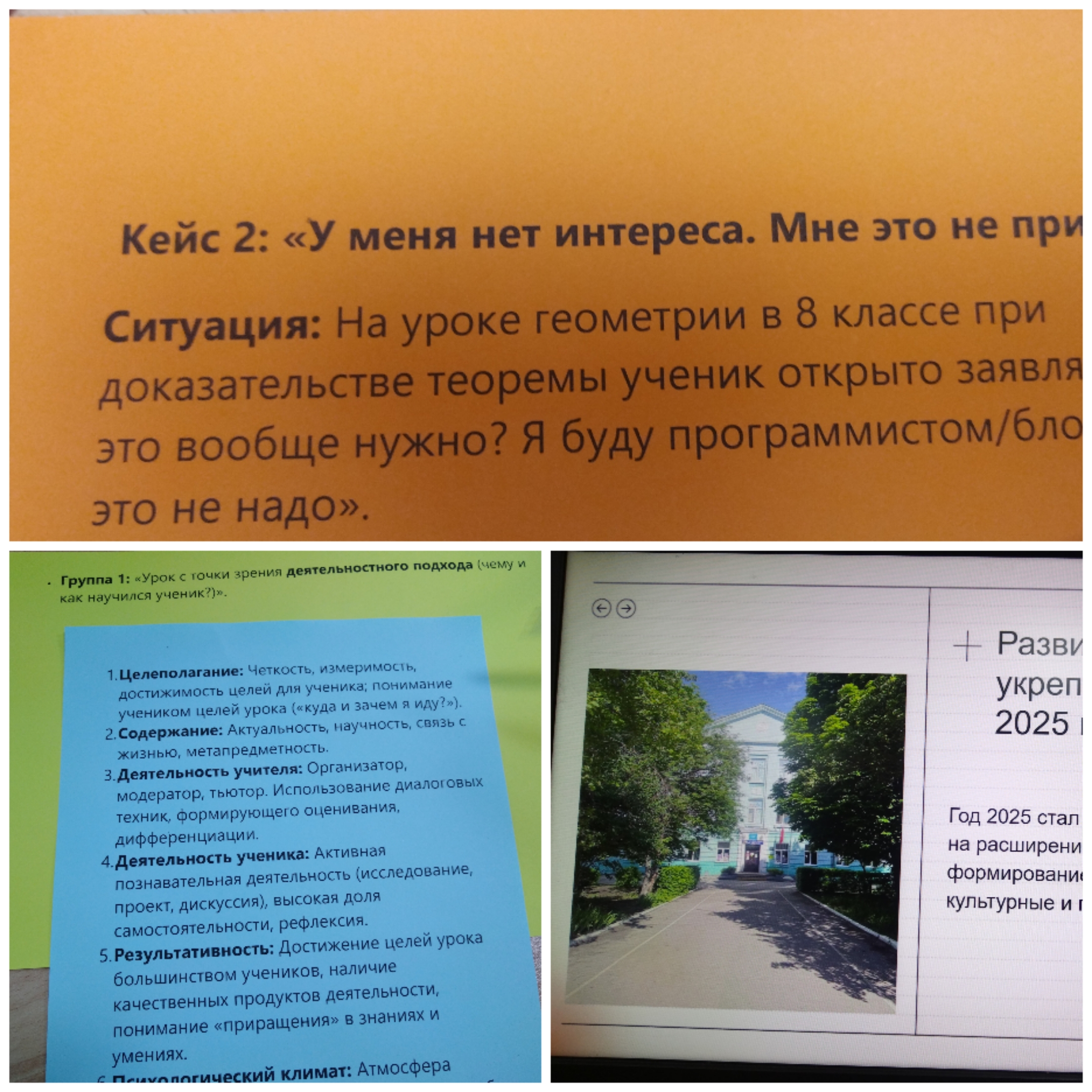 Коллектив работал с кейсами и реальными ситуациями из школьной жизни, например, как реагировать на фразу ученика: «Мне это неинтересно и не пригодится»