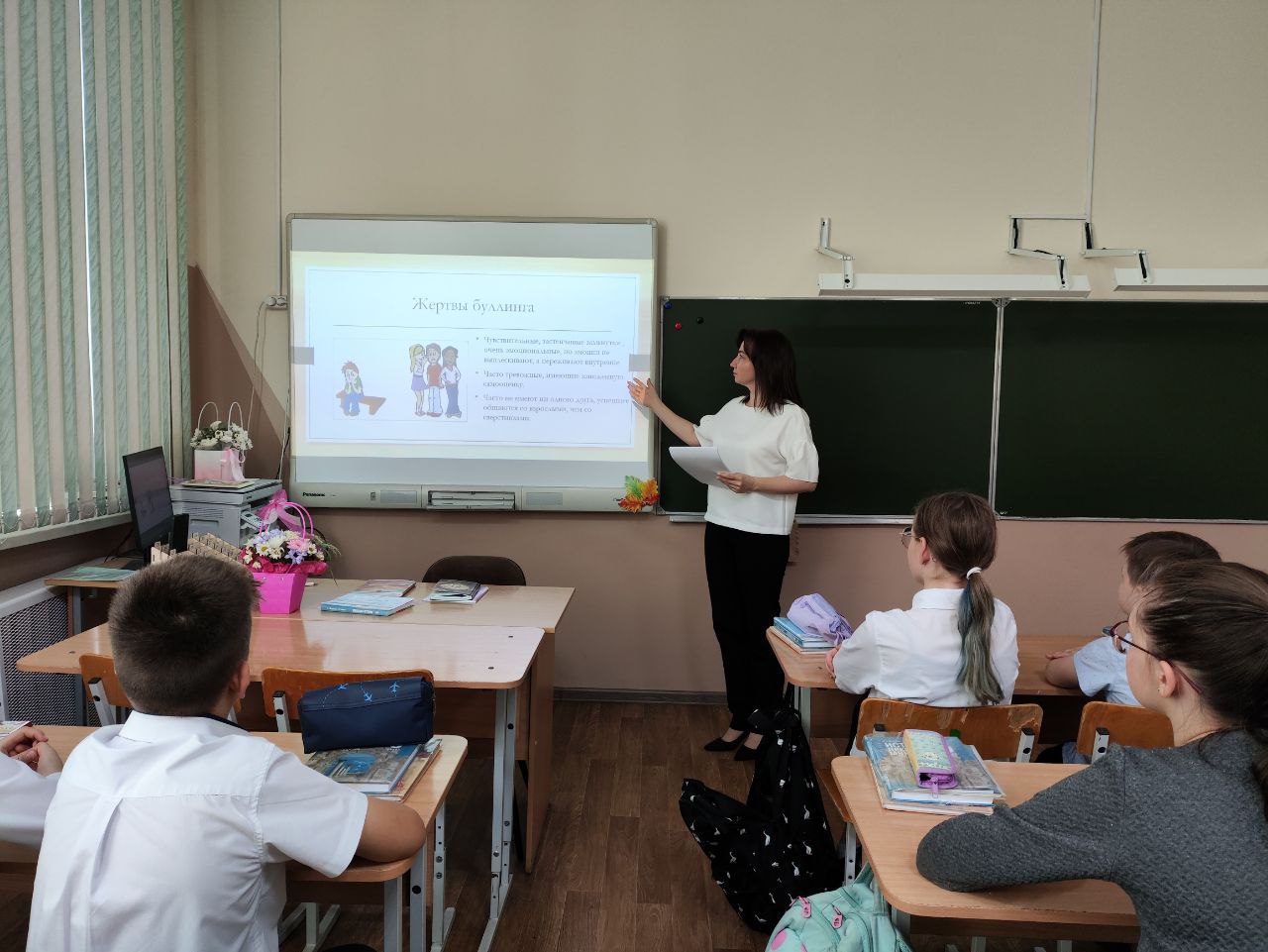 Во время занятия ребята узнали, что такое буллинг, какими формами он проявляется и почему важно сообщать взрослым о случаях травли. Педагог привела яркие жизненные примеры и обсудила возможные последствия агрессивного поведения сверстников друг к другу.