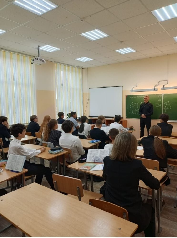 В рамках месячника безопасности, 11 сентября состоялась встреча учеников 9-го класса с начальником уголовного розыска ОМВД России по городу Кузнецку Тезюпиным Игорем Юрьевичем.